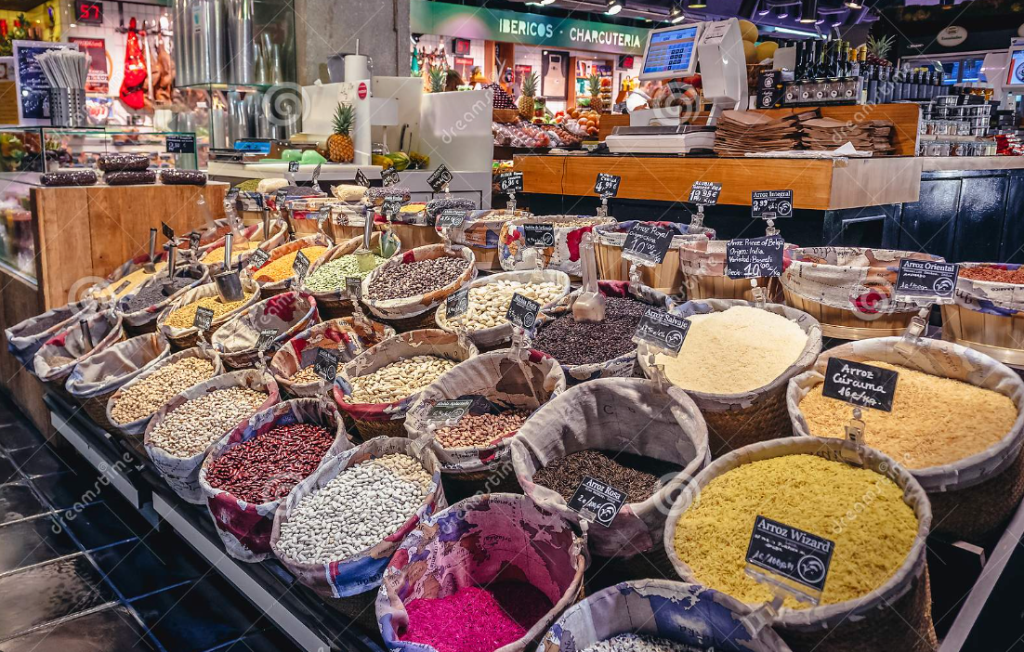 מול הדירה המומלצת, שוק צבעוני ועשיר, דוכני טפאס בקומות העליונות וסופרמרקט מגוון בקומה -1.